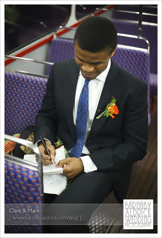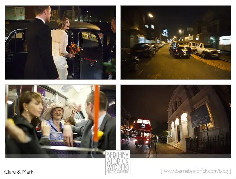 Hence the groupshots being done in the church. But off Clare & Mark shot to their reception at the Amadeus Centre in the Little Venice area of London and we followed in vintage red London buses.