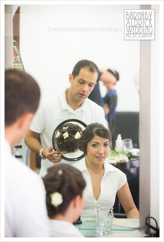 Here’s our happy bride having her hair finished off by Patrick, with mum looking on happily!