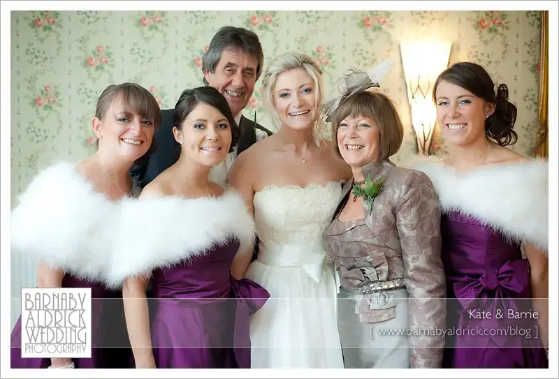 Kate & Barrie Hazlewood Castle Winter Wedding Photography by Barnaby AldrickA quick groupshot before we leave