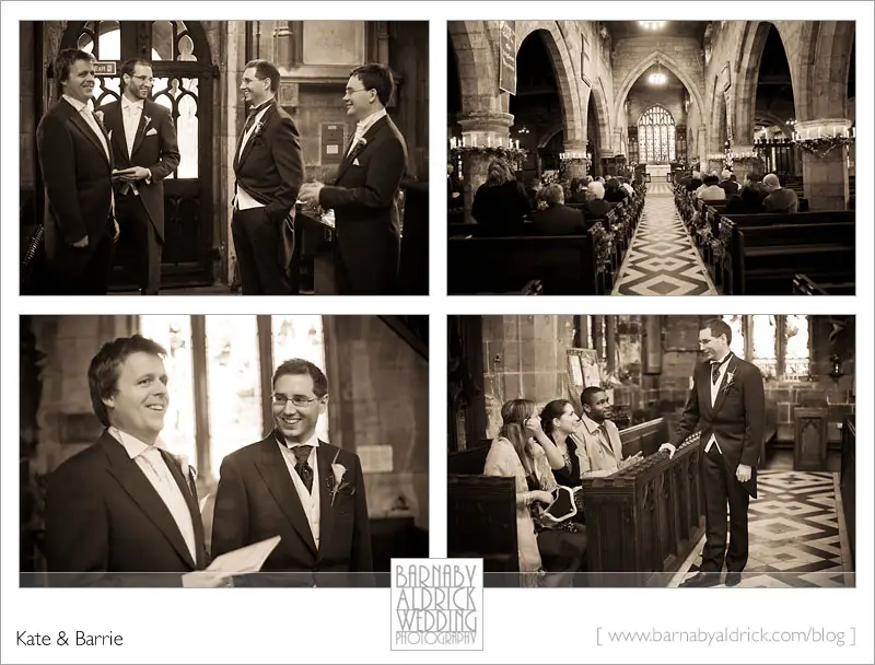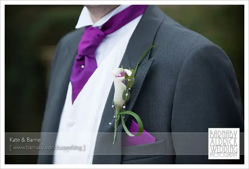Kate & Barrie Hazlewood Castle Winter Wedding Photography by Barnaby AldrickClare joined Barrie & the guys at the church beforehand.  I love the colour scheme and creative buttonhole.
