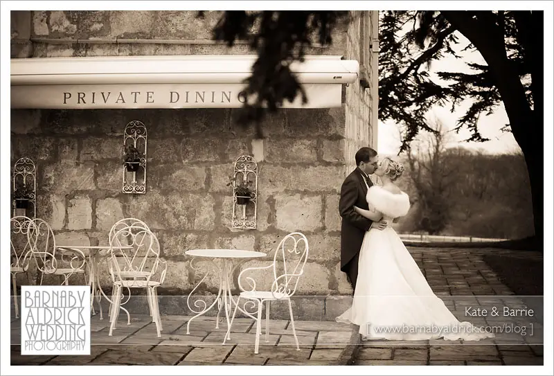 Kate & Barrie Hazlewood Castle Winter Wedding Photography by Barnaby AldrickI suppose snogging is a kind of ‘private dining’!