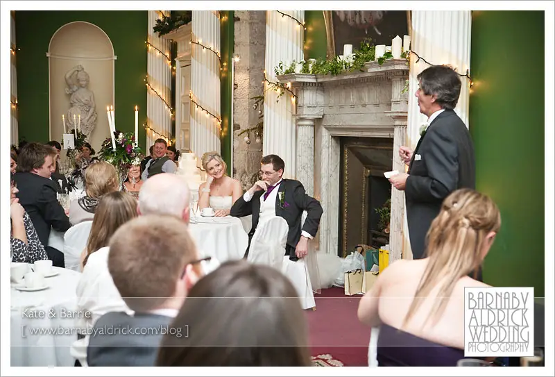 Kate & Barrie Hazlewood Castle Winter Wedding Photography by Barnaby AldrickOne speech shot that caught my eye.  I think it’s the connection between the bride & her dad that makes it.