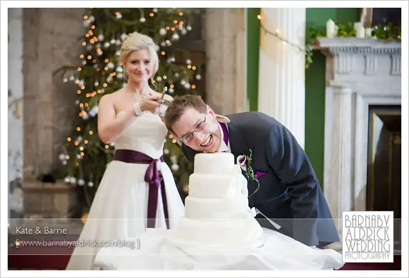 Kate & Barrie Hazlewood Castle Winter Wedding Photography by Barnaby AldrickI thought that sword might get called into play! I promise I don’t set stuff like this up, but these two had a great sense of fun.