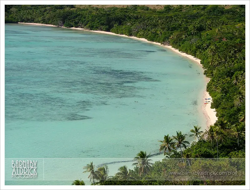 Took a dip in sea off the coast of a tasty Fijian island… (not long after taking this photo I joined my 4 pals in the sea, across from their canoes)