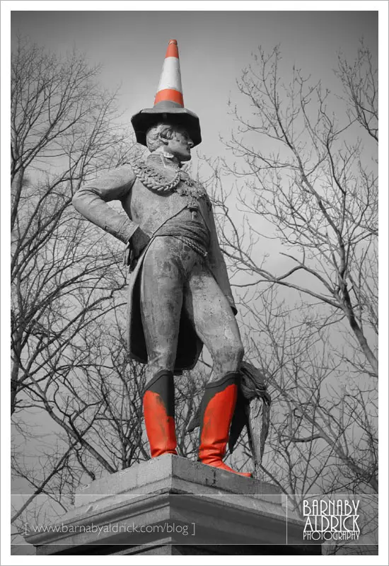 And the student touch on a statue of Admiral Wellington near the University.