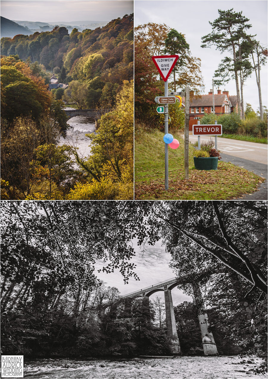 This was a special day in so many ways. Not only are this pair very much in love, WORE LOADS OF AMAZING TWEED and had their lovely dog Henry there in a family tartan bow tie –but Tim and Tom are close family friends! So my mum was there (and delivered a lovely poem about how love is like owning a dog!) and another close family family friend Gill (Tim’s Auntie) presented the wedding ceremony with Tom’s special Auntie Lynn. So it was a lovely family affair, and a beautiful day to boot! Trevor is in the rolling hills of the Welsh Marches, near Wrexham, and sports a fantastic giant iron aquaduct. Castles dot the hills, mist sits in the valleys and the turning leaves were in every shade of autumn, like natures very own firework display!