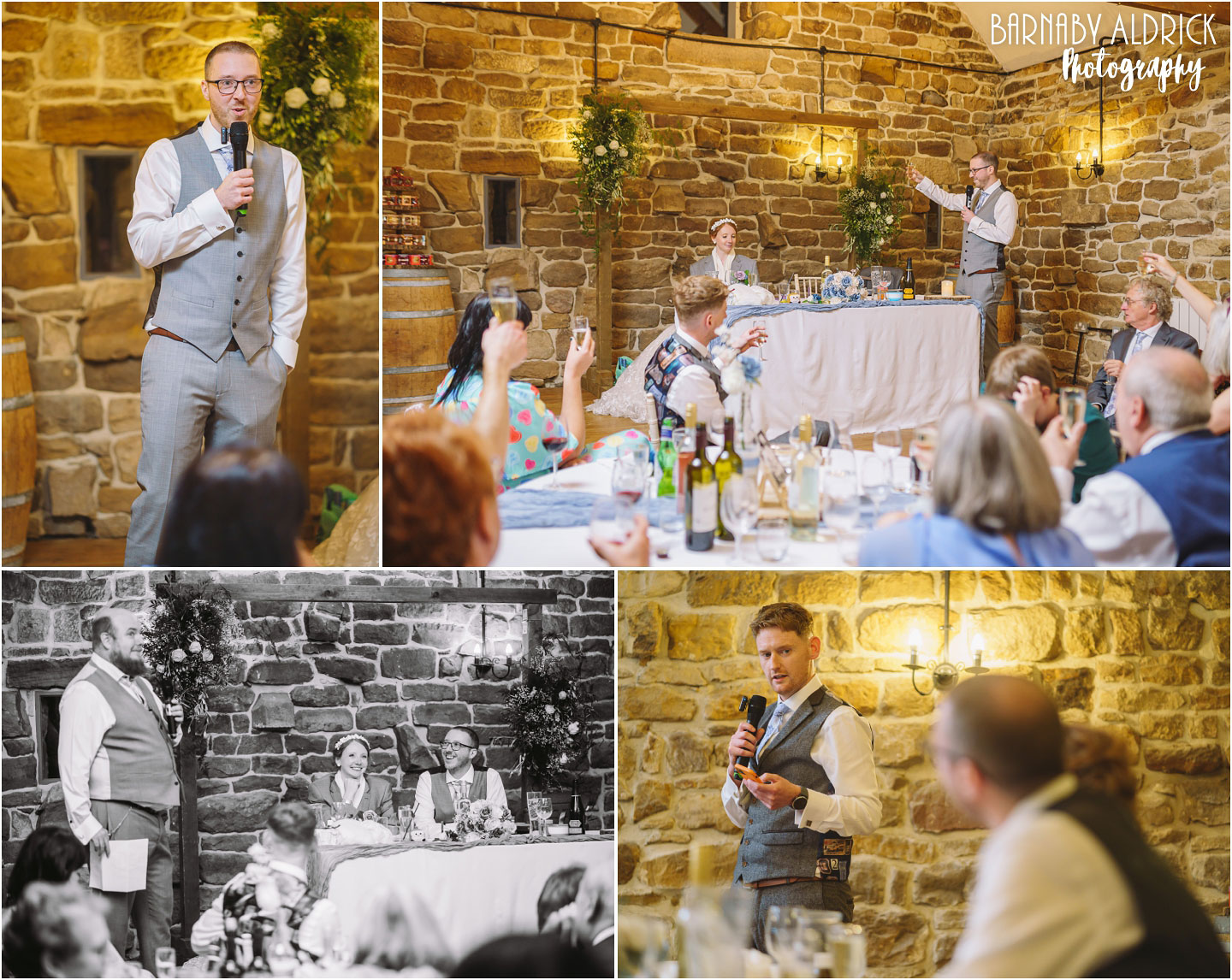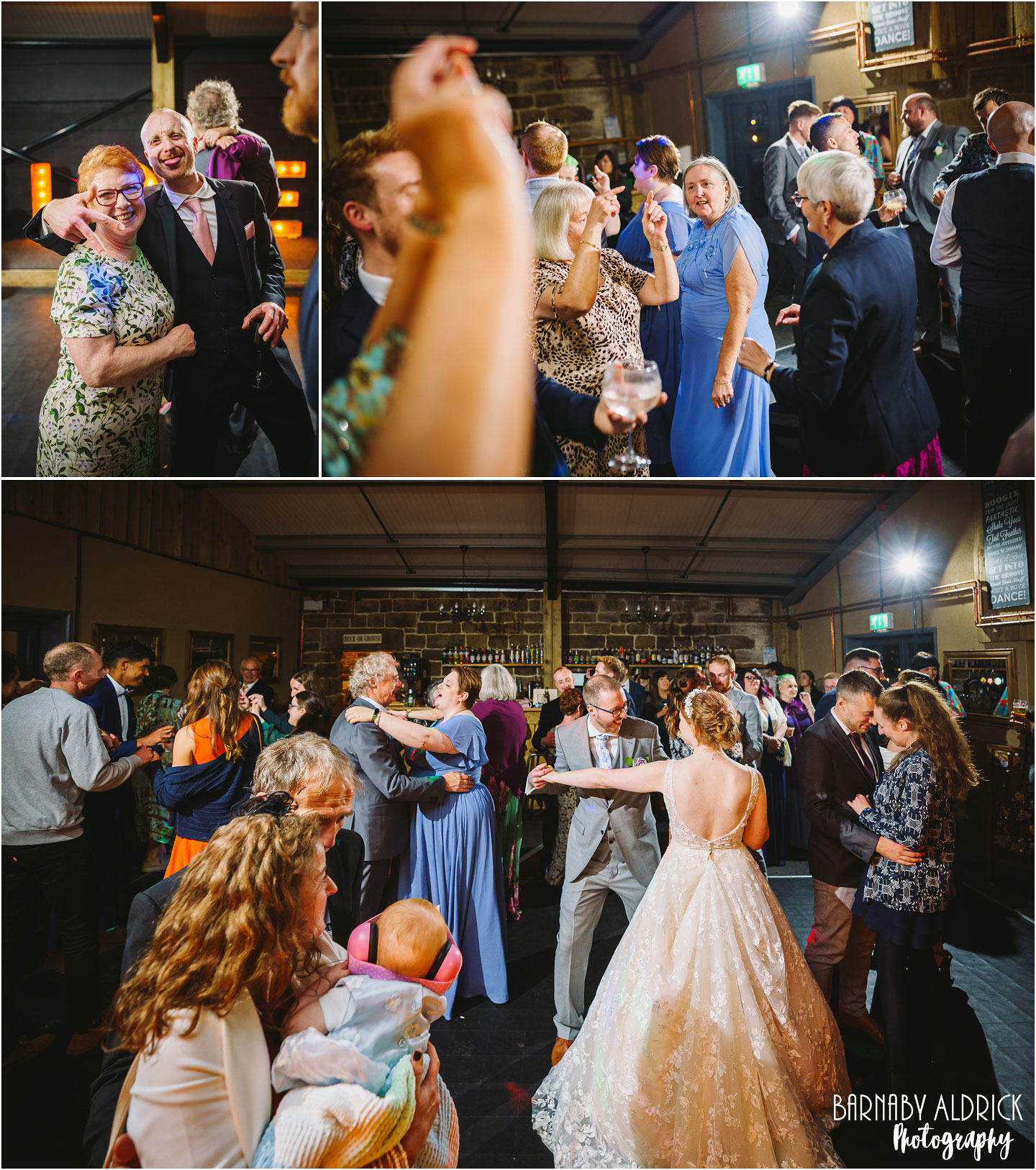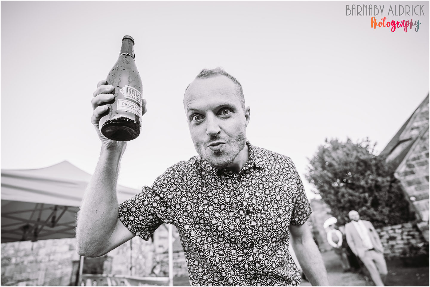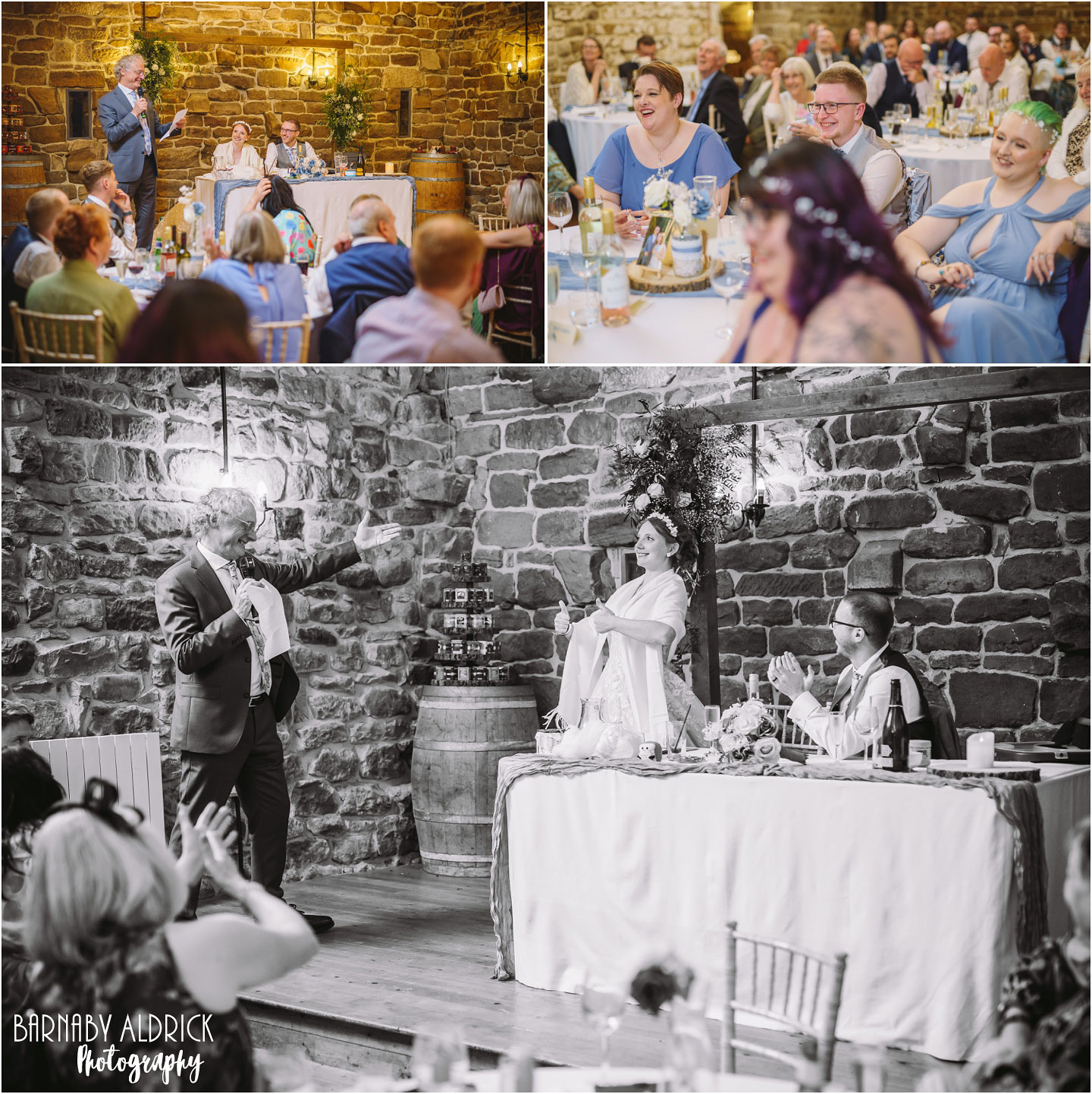 In the morning I skipped between the bridefolk (with a gent of honour) in the house and groomsfolk (also starring a lady person of honour) in the Threshing Barn – and very much enjoyed the banter at each! Their ceremony upstairs in The Courtroom was super charming, literally passing the baby to pop rings on one another, before processing out to a string rendition of the Jurassic Park theme!
