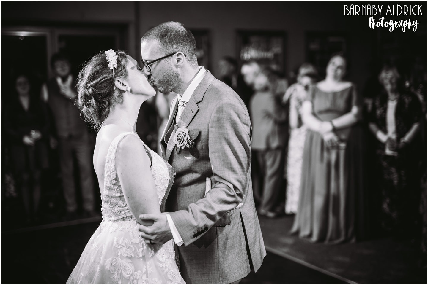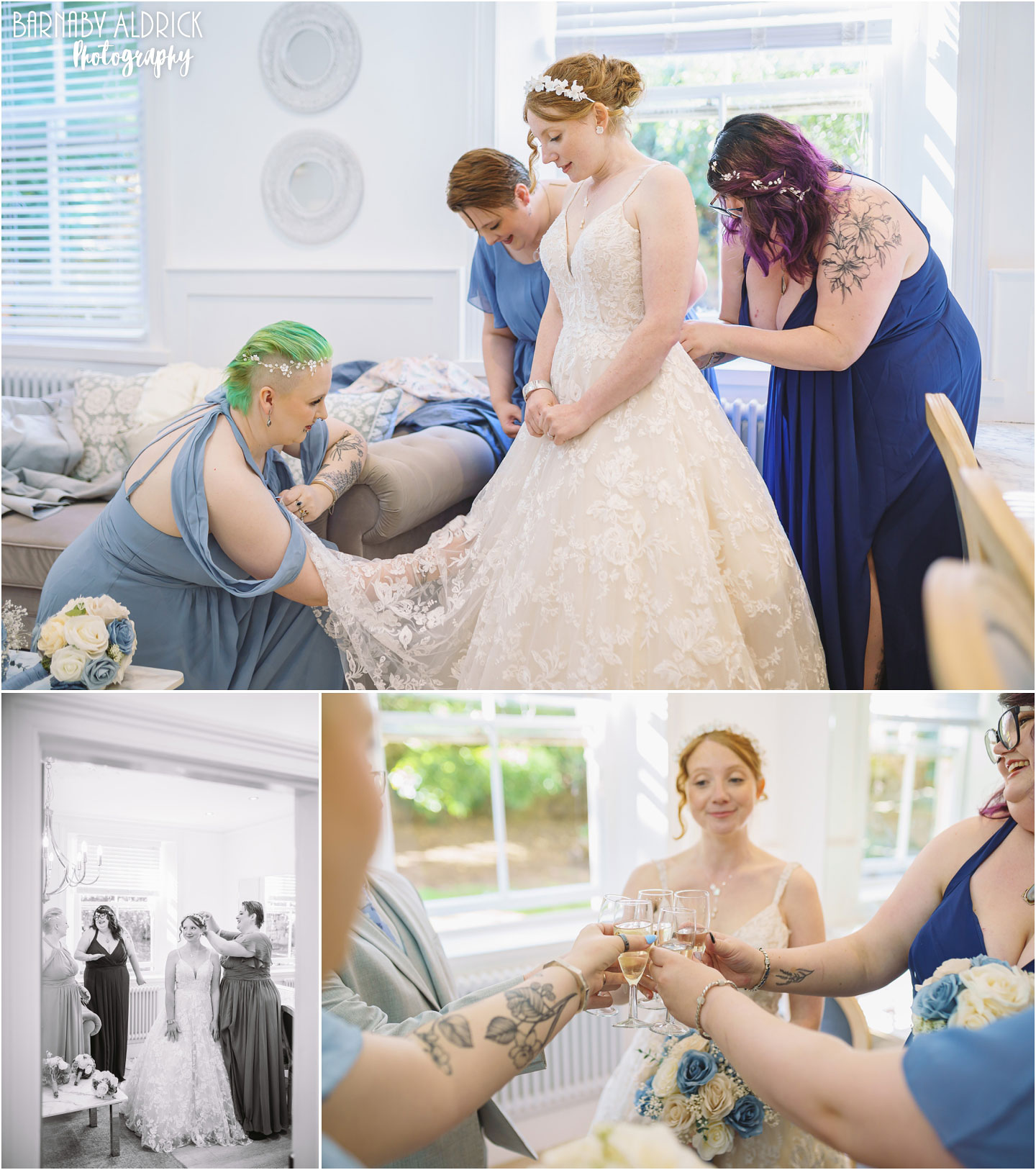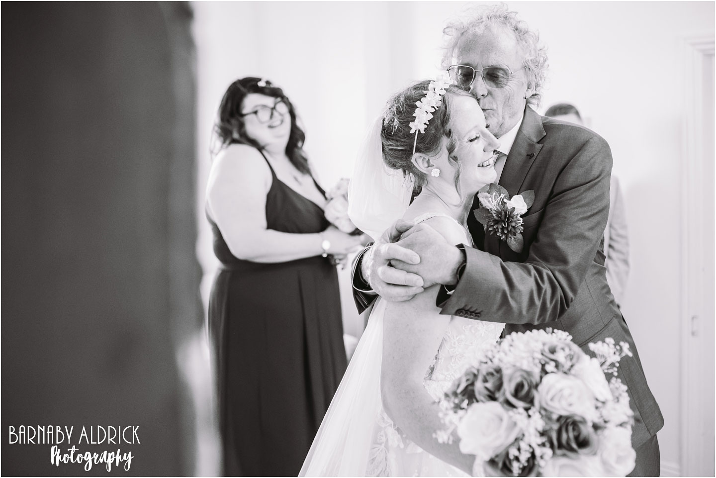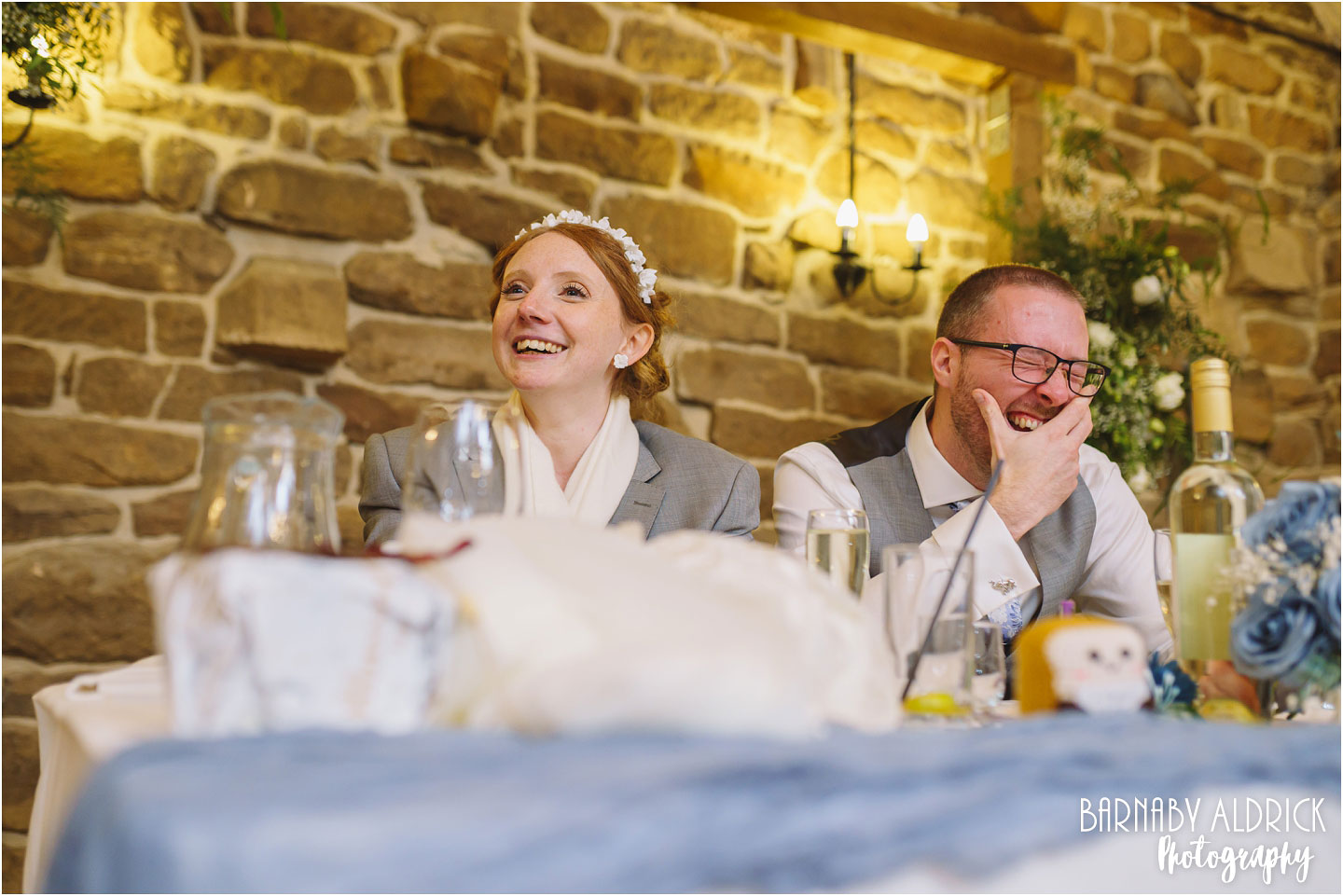 In the morning I skipped between the bridefolk (with a gent of honour) in the house and groomsfolk (also starring a lady person of honour) in the Threshing Barn – and very much enjoyed the banter at each! Their ceremony upstairs in The Courtroom was super charming, literally passing the baby to pop rings on one another, before processing out to a string rendition of the Jurassic Park theme!