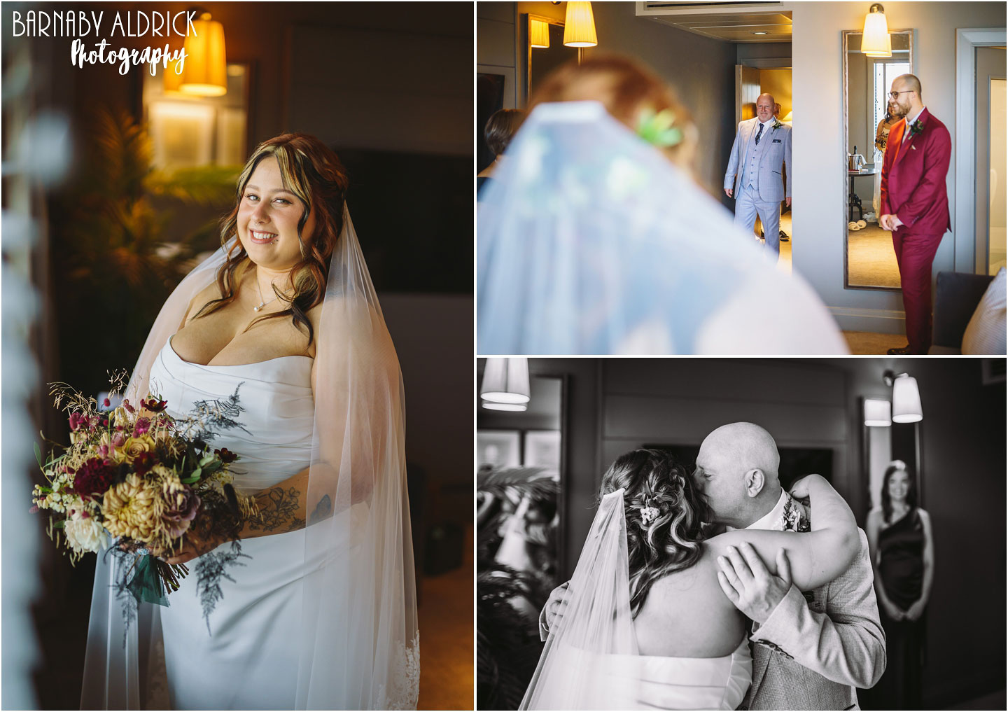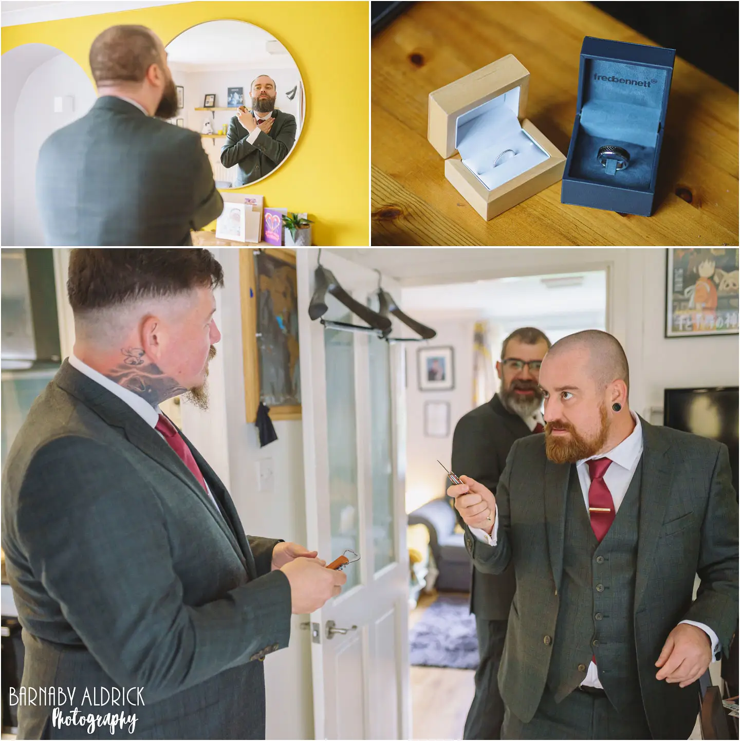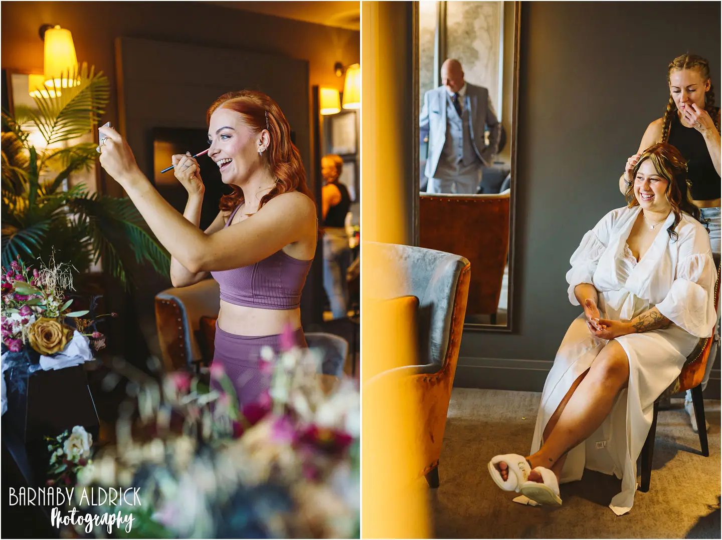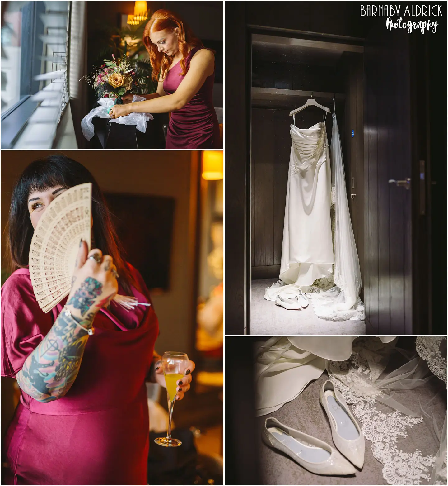 I kicked off morning preps with a fun Team Groom, in drizzly Horsforth with their cats Ozzy and Sharon. Then I zoomed into town to join Team Bride in a grand suite on the 9th floor of the swanky Dakota hotel in central Leeds.