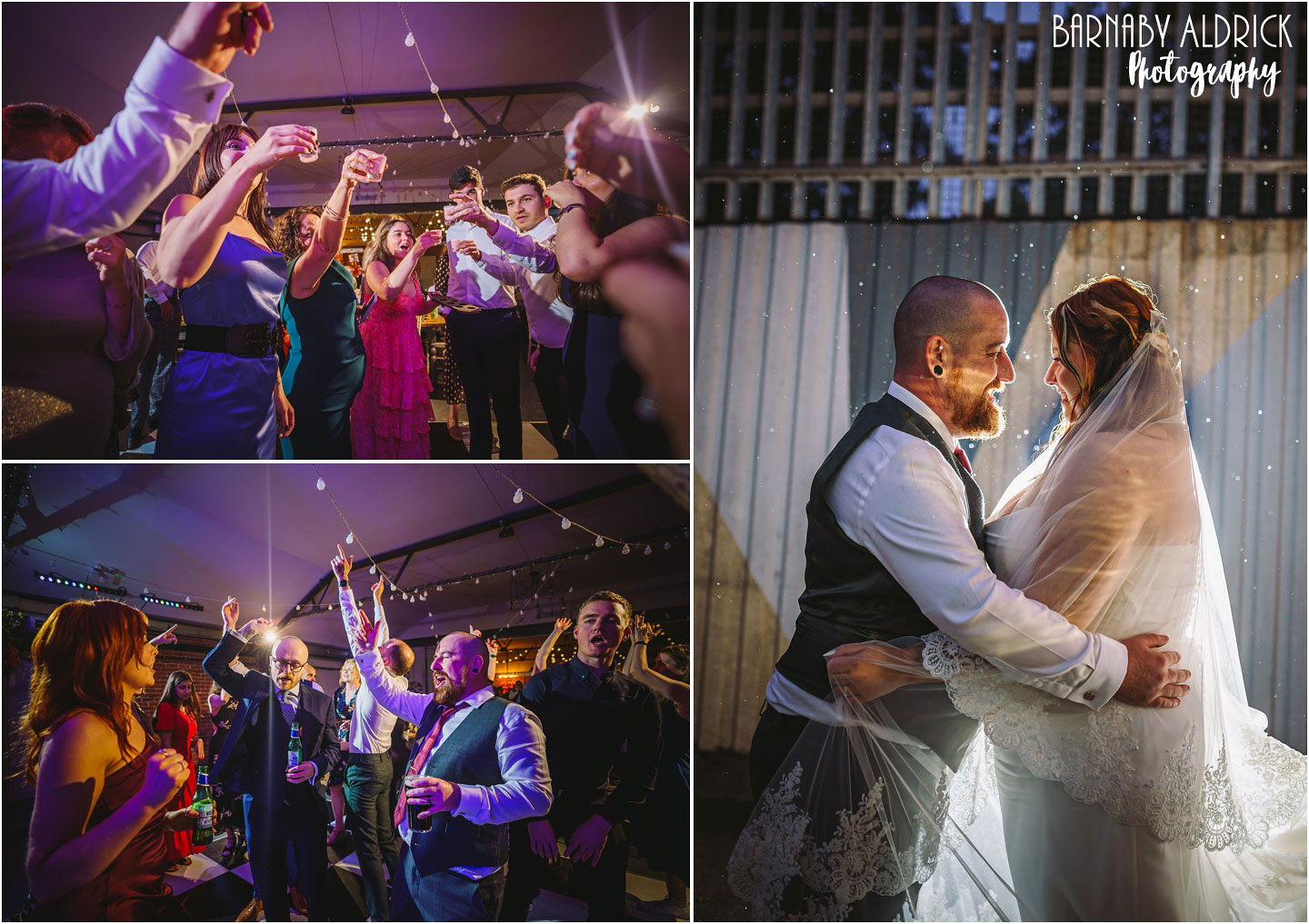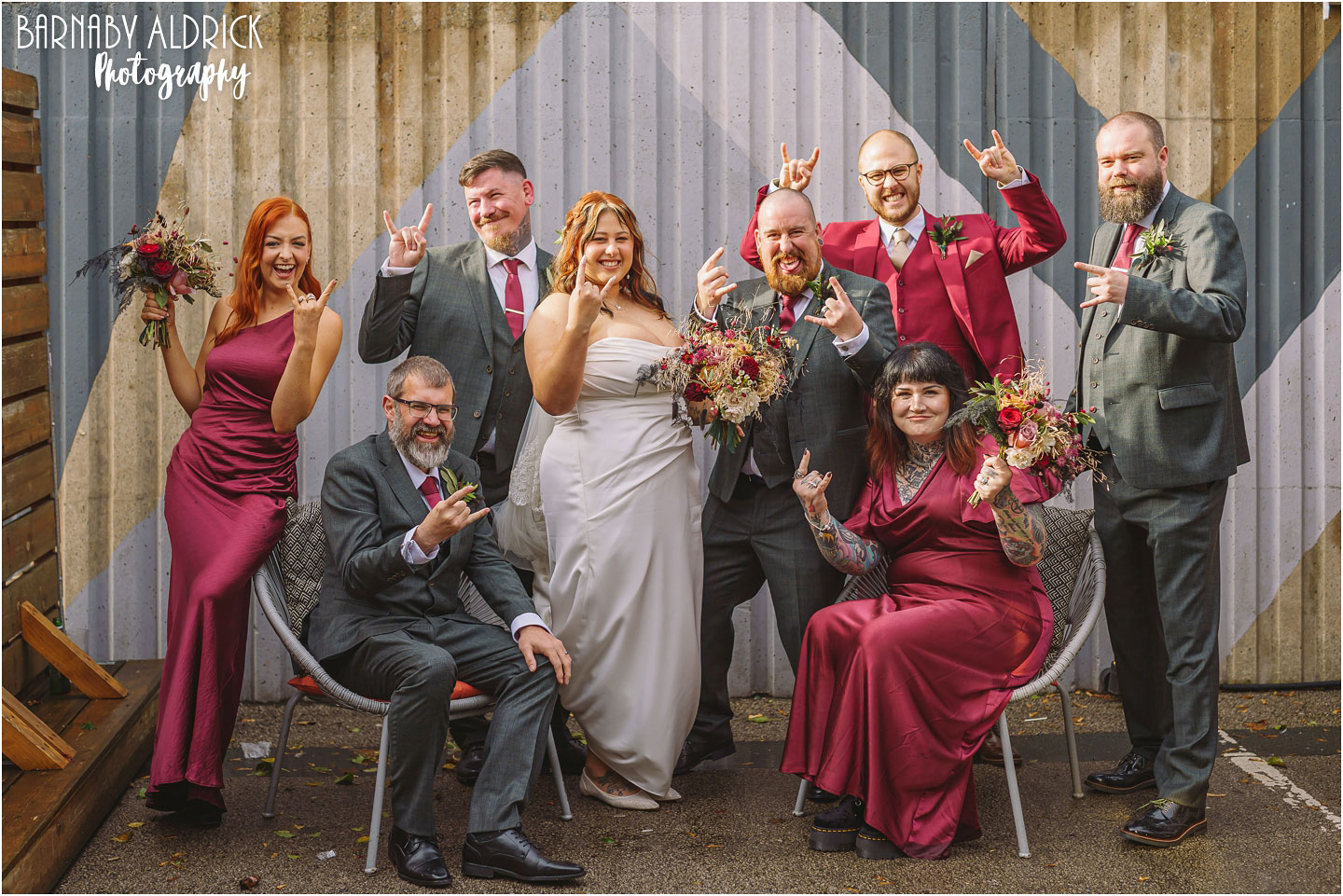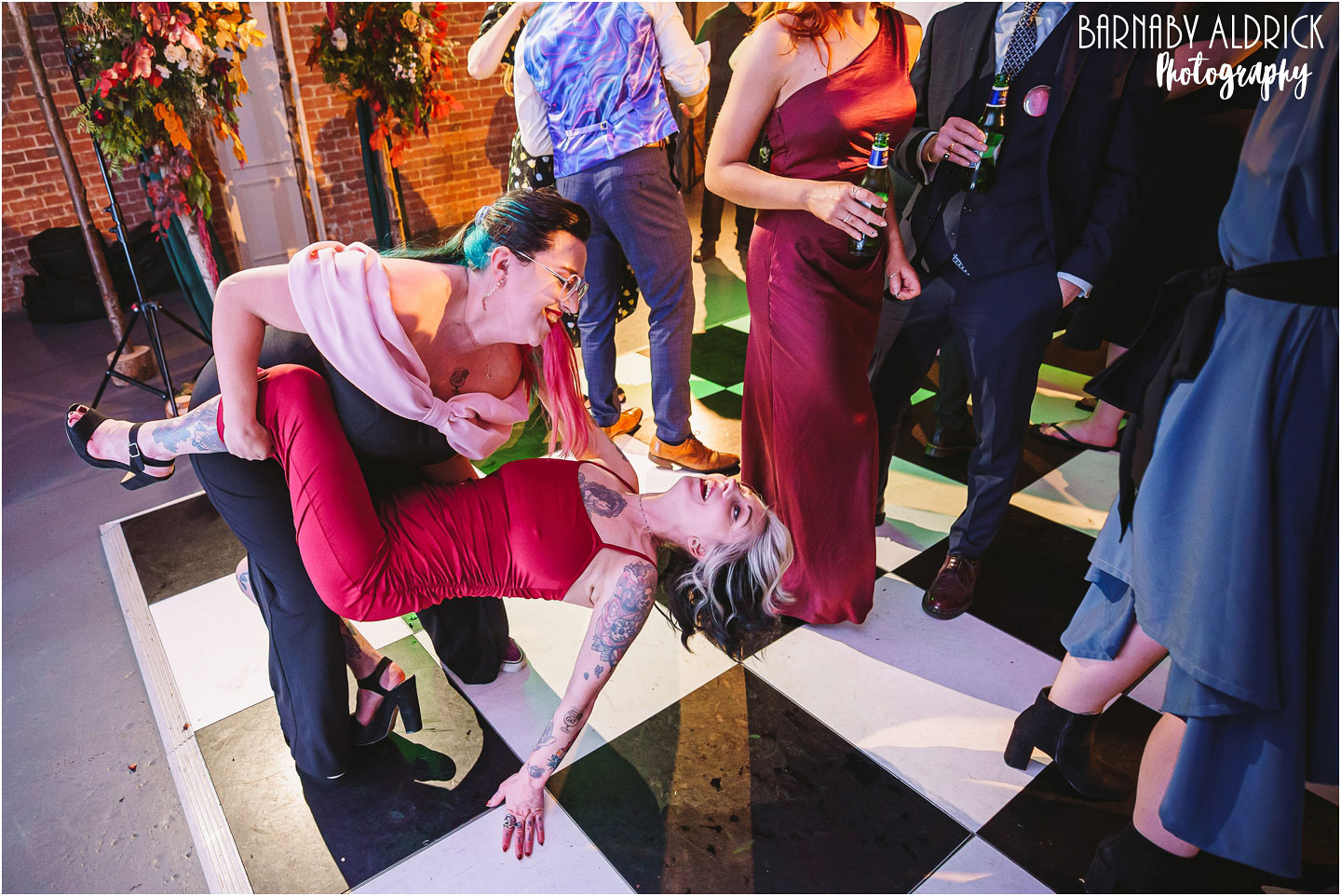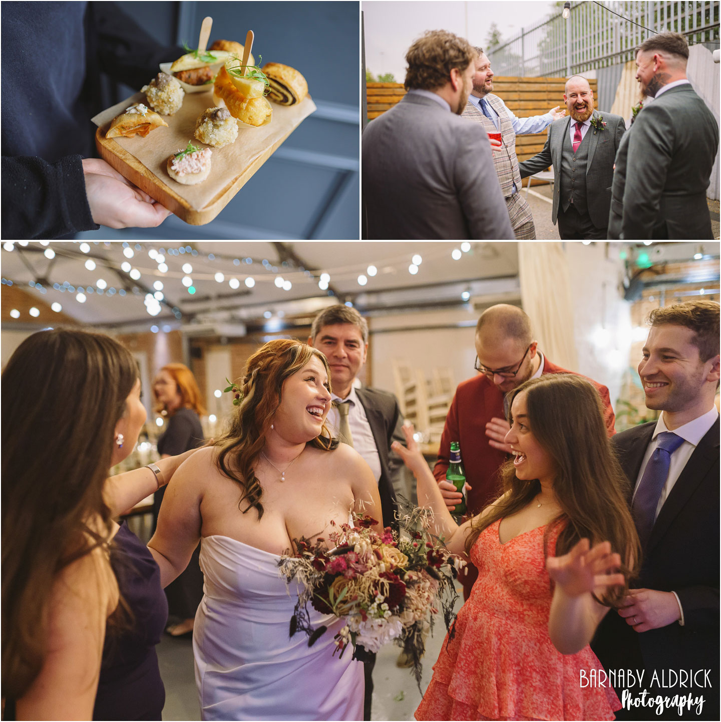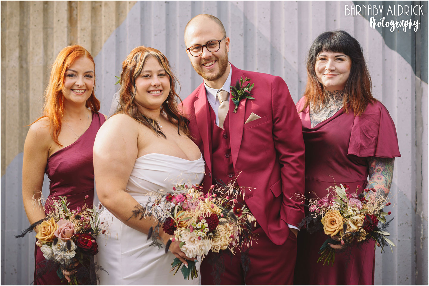 Tattoo’d and beard-centric guests proved great value, doing shots and loving the Photo Booth, and we thankfully managed to get some awesome wedding party pics out against nearby urban mural backdrops!