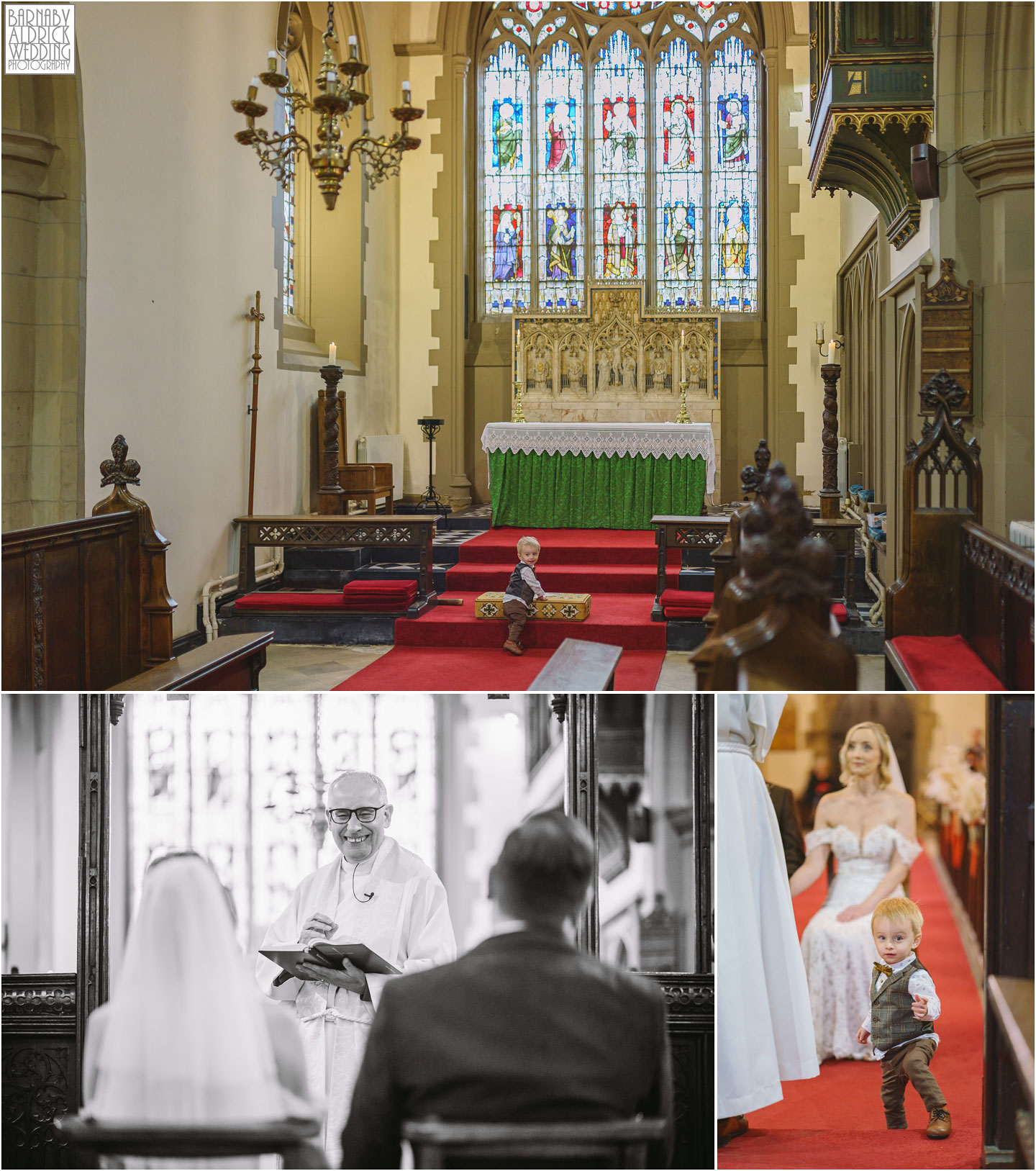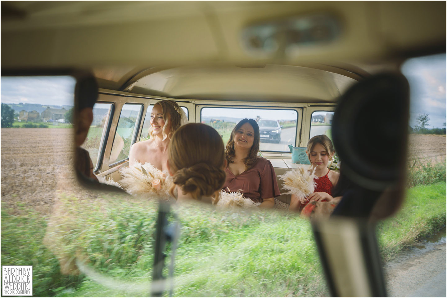 On the tops of Kirklees, nestled beneath Emley Moor mast, I joined Emma, team bride & Paploo the Ewok Teddy for their relaxed preparations in The Suite at The 3 Acres. After getting into her stunning dress we dived in a beaitufl old split screen VW Campervan and headed to All Saints Church, in the charming Yorkshire village of Cawthorne, excitedly awaited by Emma’s Dad and their cute little lad Seb!